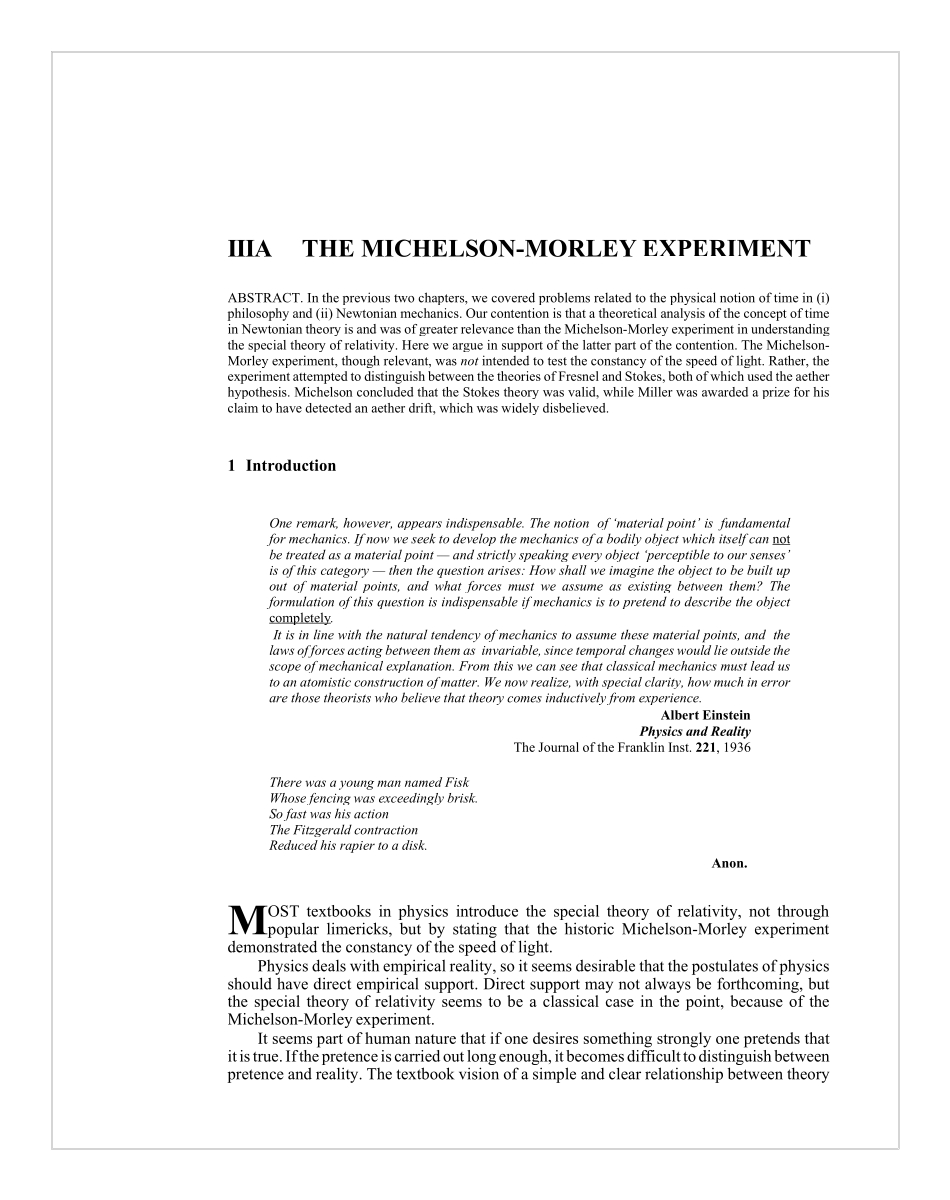 • (Relativity was NOT due to just the Michelson-Morley experiment, see chp 3a in Time: Towards a Consistent Theory).